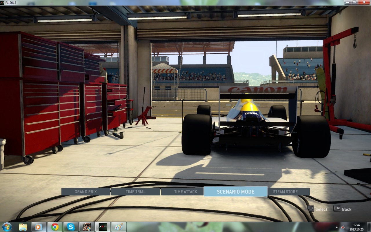 A Classic mode menüje hát sokkal inkább a mostani éveket idézzi sem mint a régit,mert az F1 Classic menüje egy garázsba visz minket.